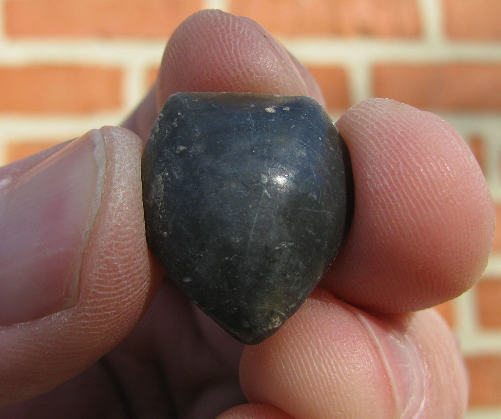I've featured the brachiopod Digonella digona on my blog previously, about four years ago, with specimens that came from Luc sur Mer, Calvados Department, France. The specimen below comes from a quarry near Ranville, which is inland and south from Luc sur Mer. The fossil is preserved with a black colored calcite compared to the tan and grey of the other specimens. It also comes from Bathonian aged sediments (Jurassic) and likely the same rock formation. The shell of the species is longer than wide with a flat anterior margin and no evidence of a sulcus. Typical of the Terebratulid order, there is a large, round foramen in the beak of the umbo on the pedicle valve.