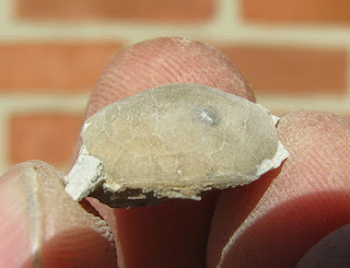 I'll detail some of the more identifiable finds in upcoming posts but here is the isolated trilobite fragment I found in the upper Viola formation rocks. It appears to be either the partial cephalon or pygidium from an Illaenid type trilobite like Bumastoides sp. or Thaleops sp.